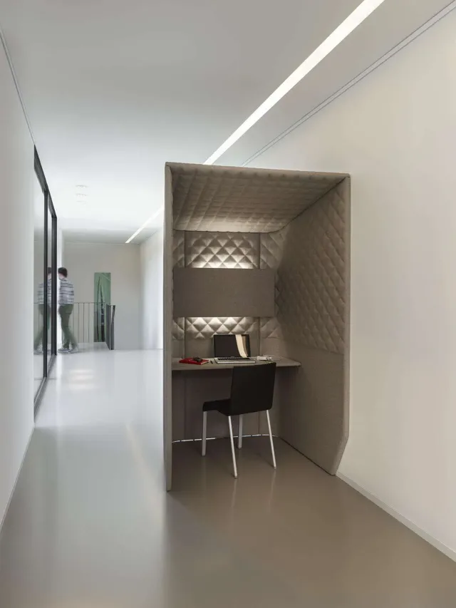La microarquitectura está formada por elementos móviles que generan nuevos espacios dentro de espacios más amplios. Los más usuales son las divisiones acústicas o paneles móviles que nos permiten separar virtualmente dos estancias, aunque cada vez más se están optando por elementos o estructuras que contienen puestos de concentración, de reunión o de conversaciones privadas en cabinas telefónicas o phone booths.