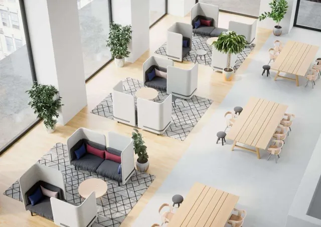 Las actuales configuraciones de open space en espacios públicos necesitan complementarse con algunos espacios de privacidad y/o concentración.